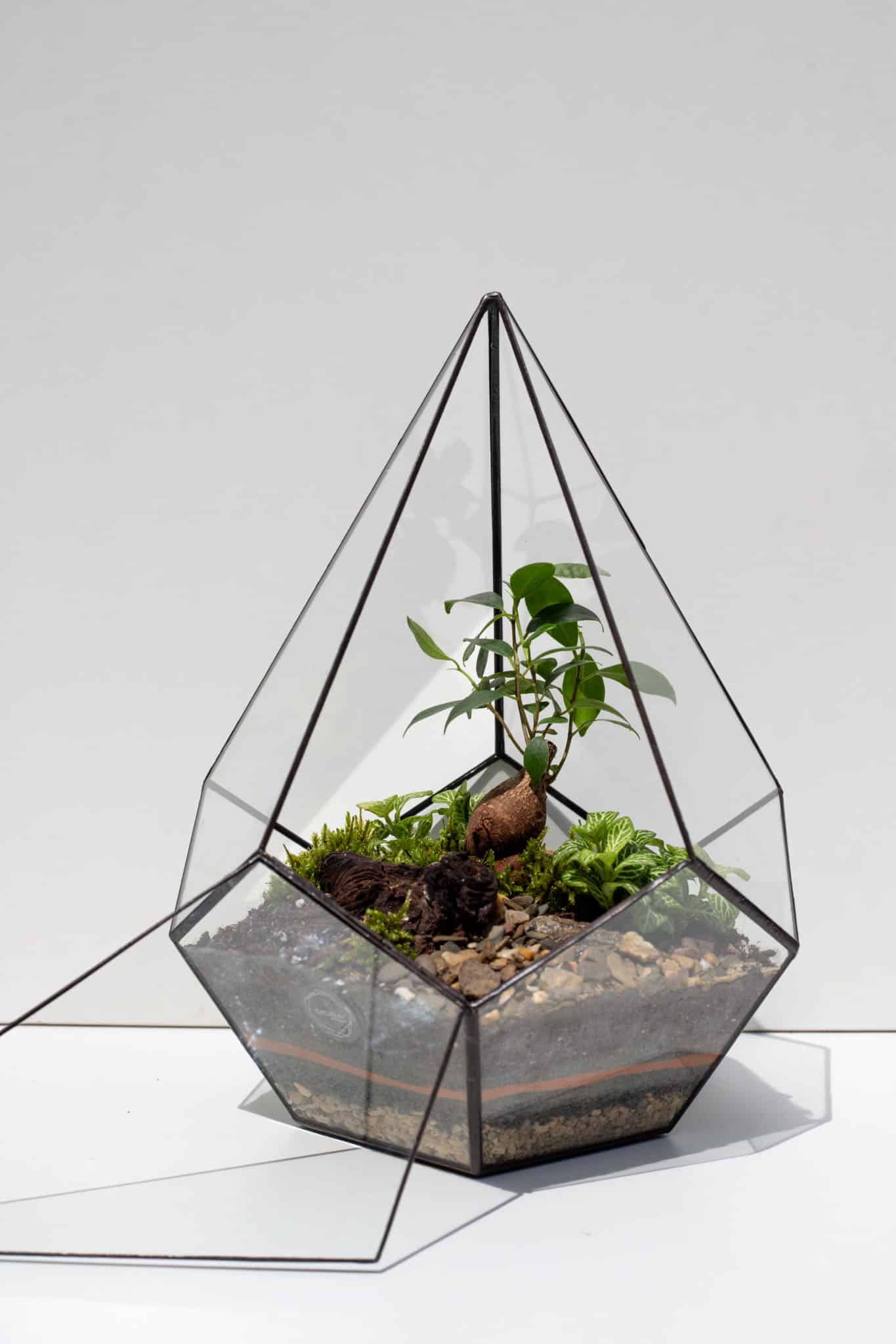 Všetky rastlinné teráriá vznikajú v našej dielni ručným procesom, preto je každý kus originálom. Sklá spájame pomocou vitrážnej techniky Tiffany, ktorá sa bežne využíva pri výrobe umeleckých vitráží. Tento tradičný spôsob výroby zaručuje nielen estetickú hodnotu, ale aj dlhú životnosť florária. Rastlinné terárium vytvára pevnú, elegantnú konštrukciu so zemitým kovovým rámom, ktorá pôsobí ako dizajnový šperk a oživuje každý priestor – od moderného interiéru cez kanceláriu až po útulnú domácnosť.